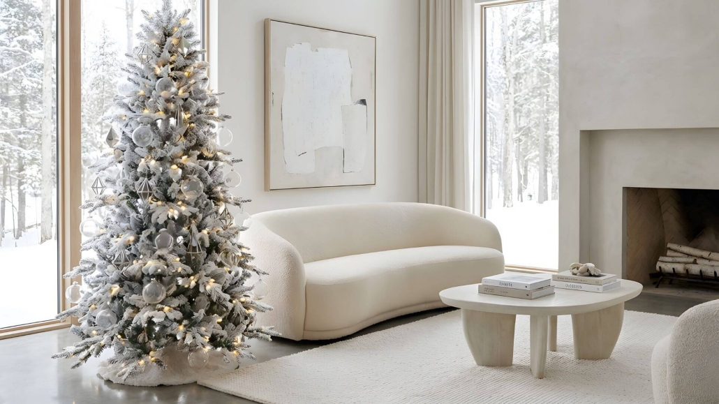 Parfait pour les intérieurs modernes, lumineux et minimalistes. Sa finition apporte une touche d’élégance et un raffinement hivernal très sophistiqué. Il s’intègre particulièrement bien dans les espaces aux murs clairs ou aux grandes baies vitrées, où la lumière naturelle met en valeur son effet brillant et délicat.
